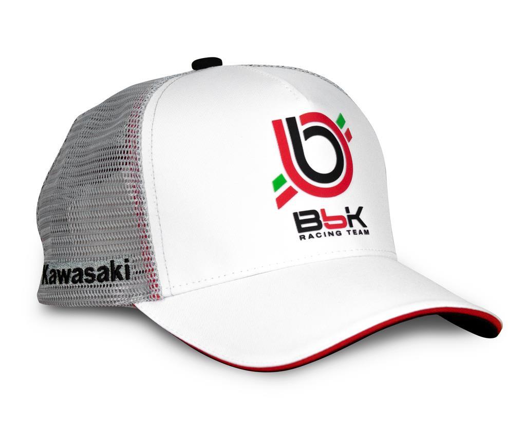 It features embroidered red and white Bimota markings and Kawasaki logo| rubber Bimota trademark on the back| the inside of the cap is taped with Bimota branded red binding and the black underside of Peak is printed with Bimota by Kawasaki  logo.
